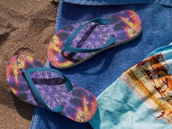 Step out in style in these unique customized flip flops, with printed fabric top side and black soles and straps. S = EU 37-39, M = EU 40-43, L = EU 44-47.