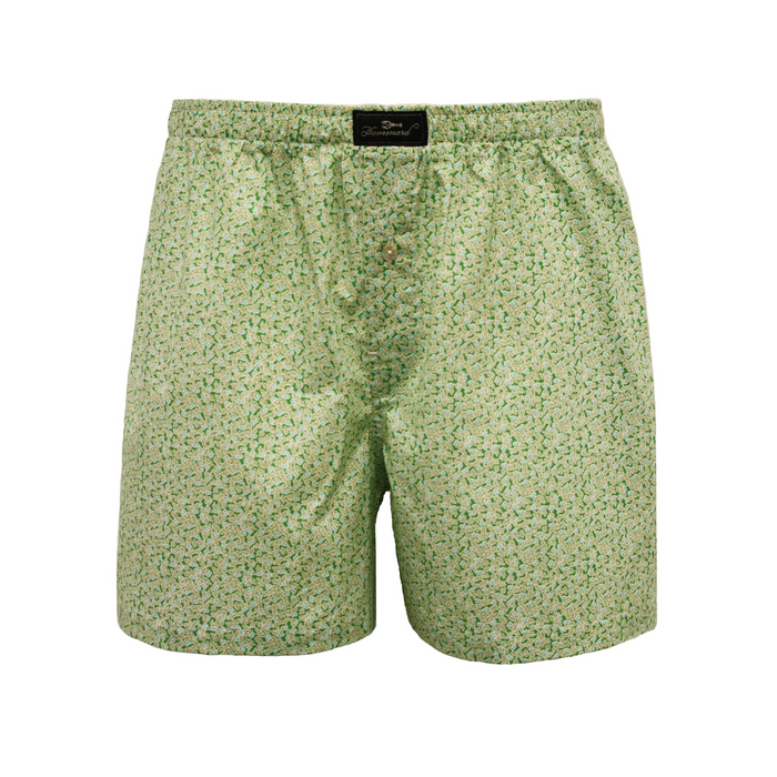 Woven Cotton Boxer Shorts Green Leaves