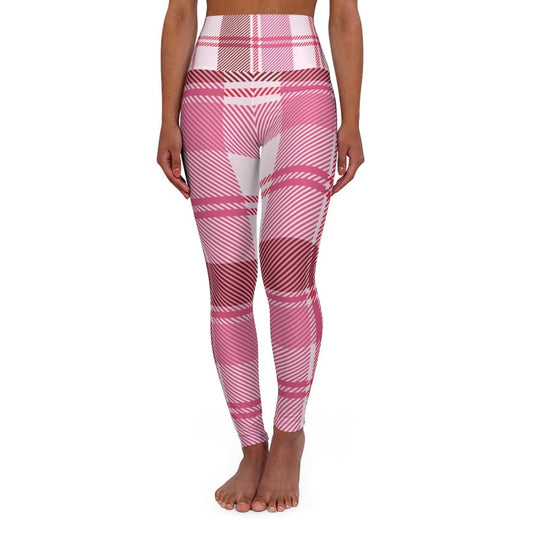 Womens High Waist Fitness Leggings / Yoga Pants - Pink Plaid