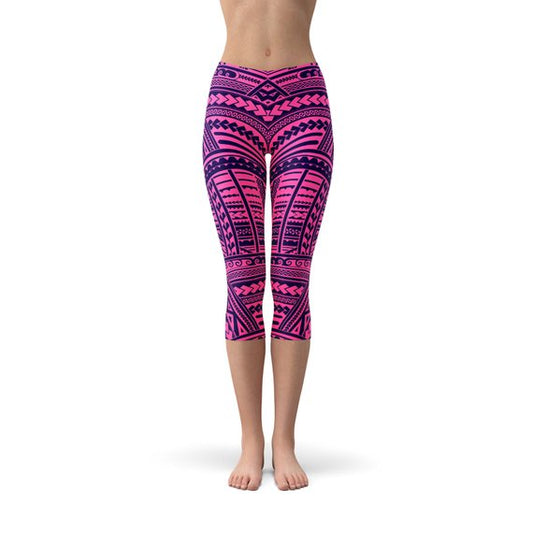 Womens Mid-rise Capri Leggings - Black Red Gray Abstract Pattern