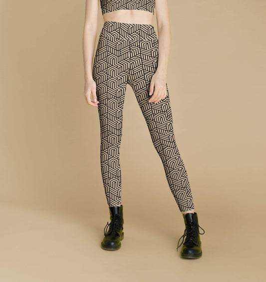 Womens High Waist Fitness Leggings - Black and White Salt of the Earth