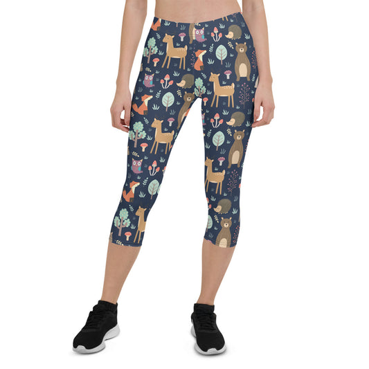 Cute Forest Animals Capri Leggings for Women
