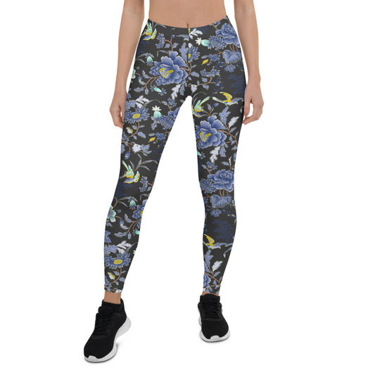 Oriental Floral Leggings on Dark Gray Background