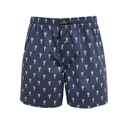 Woven Cotton Boxer Shorts Navy Lobster design