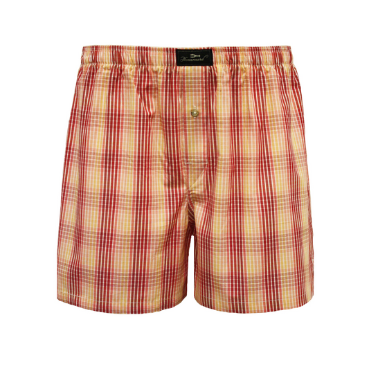 Woven Cotton Boxer Shorts Red Orange Check design