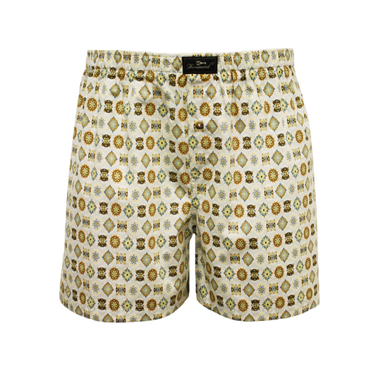 Woven Cotton Boxer Shorts Beige Crystals Design
