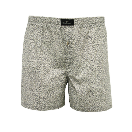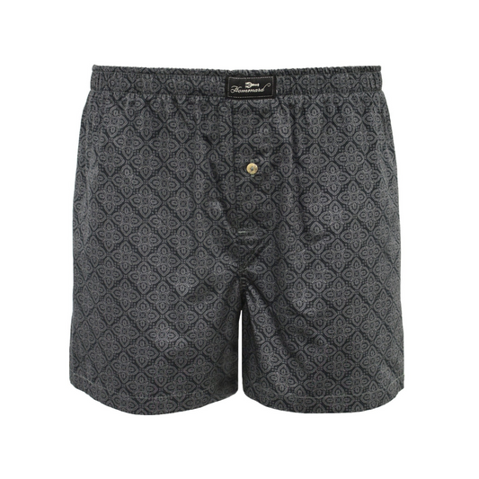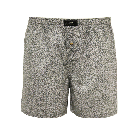 Woven Cotton Boxer Shorts Dark Grey Paisley
