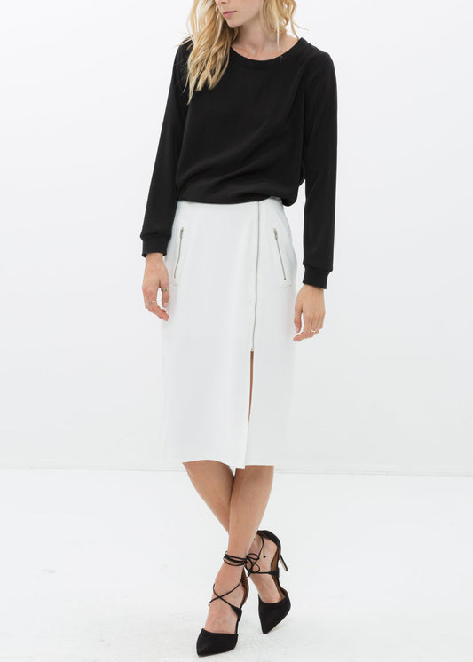 Women's Zip Up Slit Hem Midi Skirt