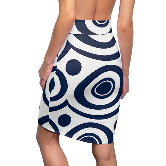 Womens Pencil Skirt - Navy Blue and White Circular Pattern