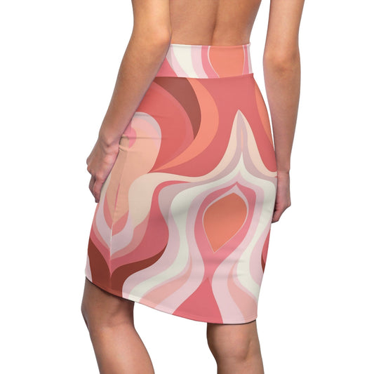High Waist Womens Pencil Skirt - Contour Stretch - Boho Pink and White