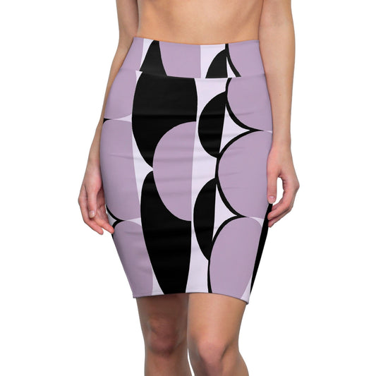 High Waist Womens Pencil Skirt - Contour Stretch - Geometric Lavender