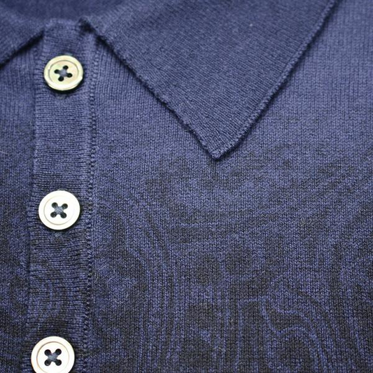 Navy Cashmere Printed Polo Shirt Tavarua in Cotton Cashmere