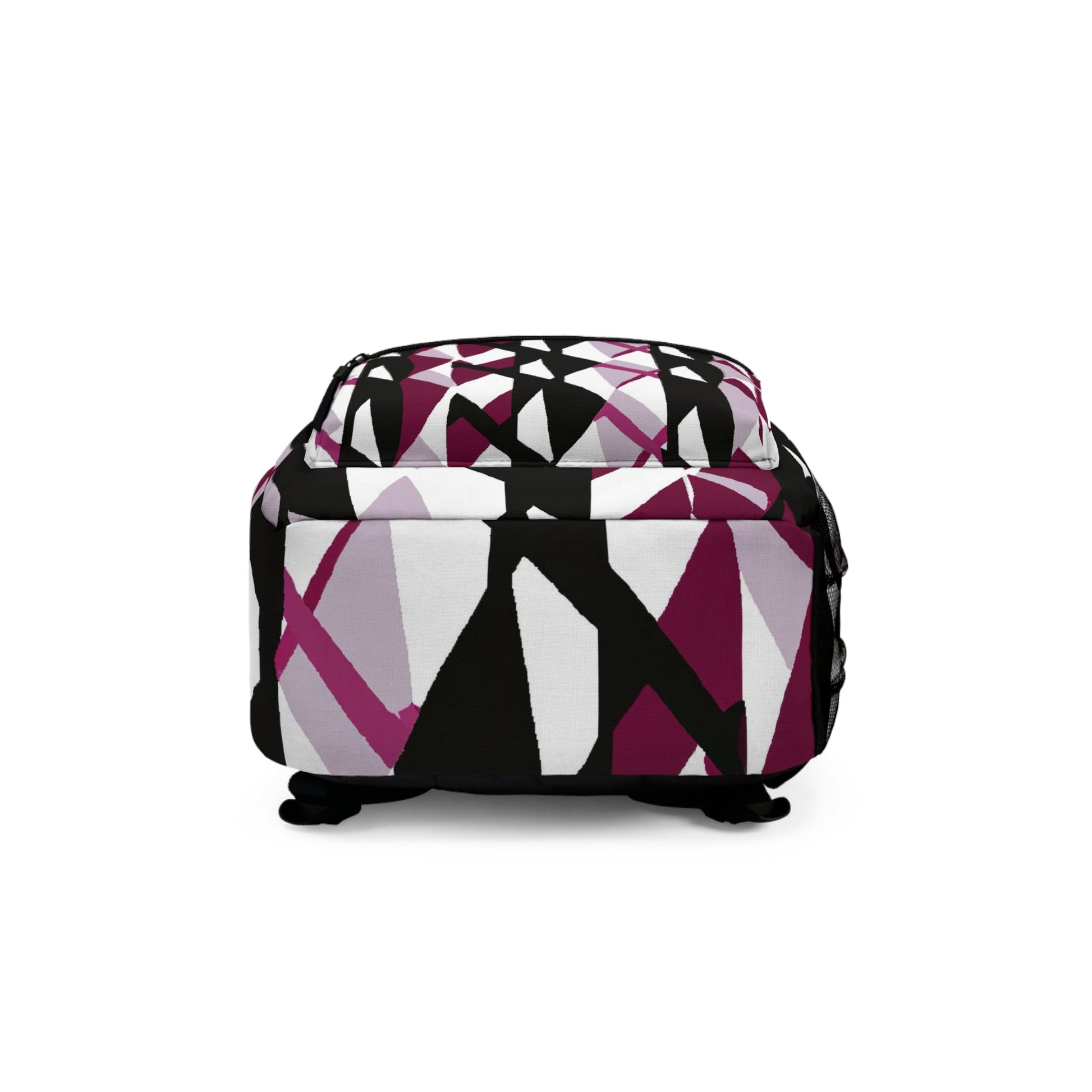 Backpack - Large Water-resistant Bag - Mauve Pink and Black Geometric