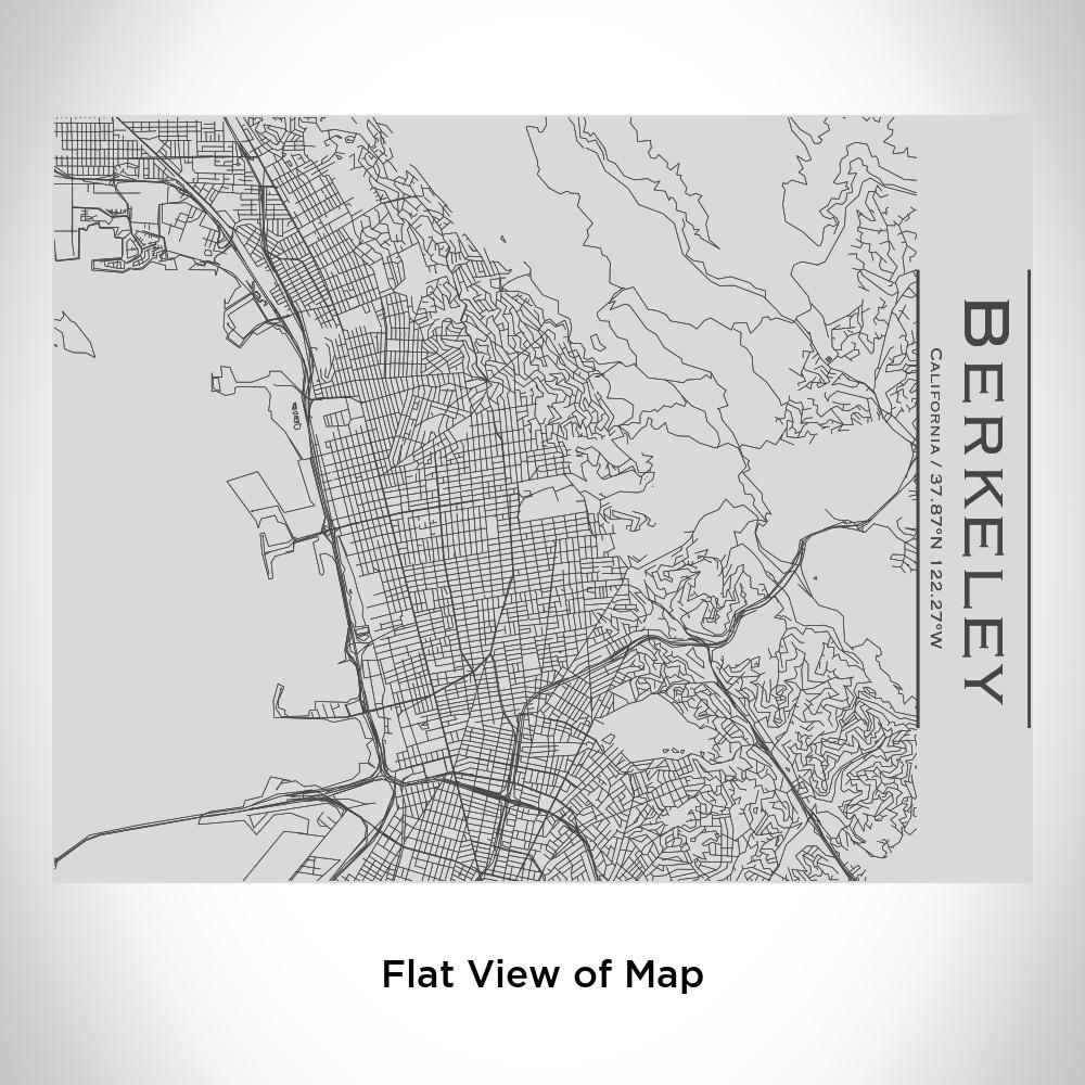 Custom engraved map of Berkeley, California and coordinates on 20oz double walled insulated stainless steel bottle with bamboo top. Measurement - 4in x 4in x 12in.