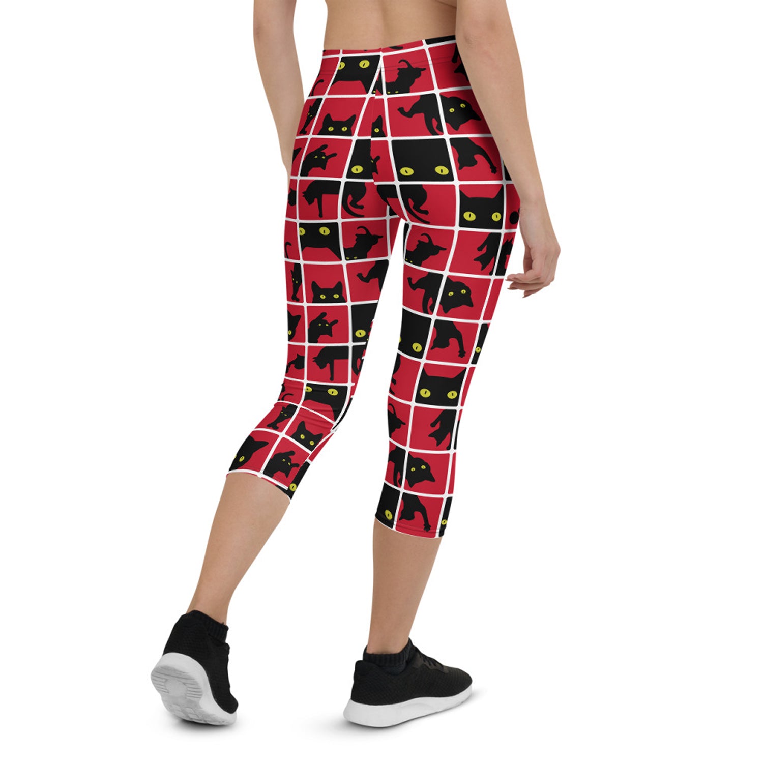 Black Cat Silhouette on Red Capri Leggings
