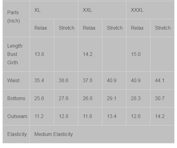 | Length Bust Girth | 30 | Adjustable | 31 | Adjustable | 33 | Adjustable |