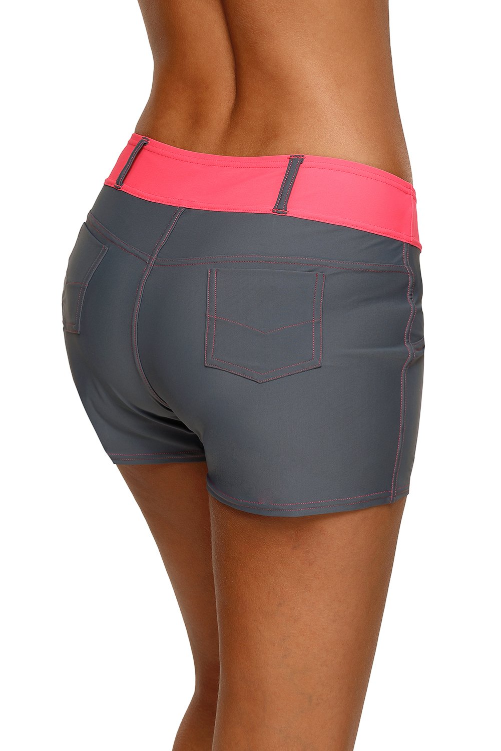 Coral Waistband Faux Denim Sports Women's Shorts Swim Bottoms