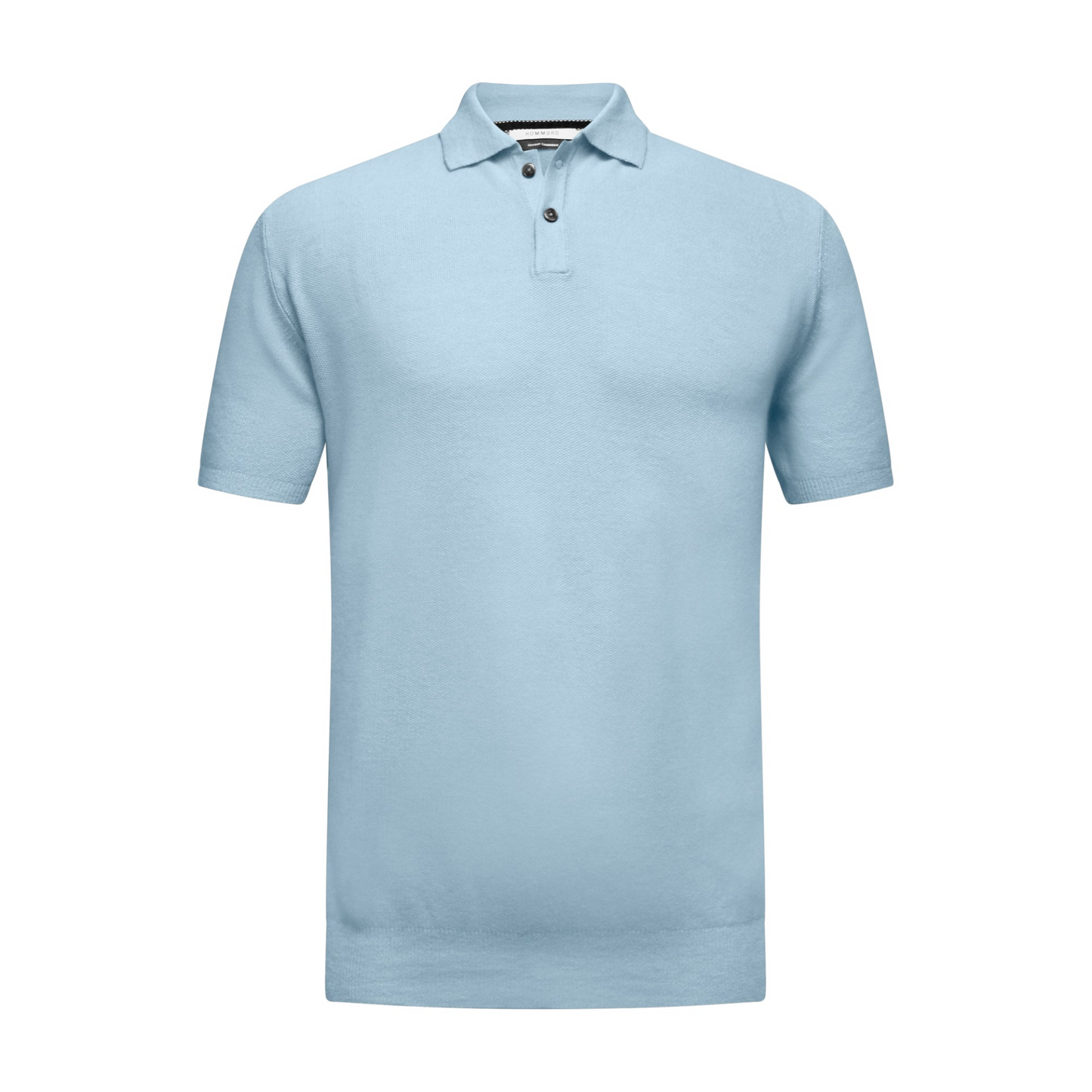 Cotton Cashmere Polo Shirt Cancale in fine pique stitch Light Blue