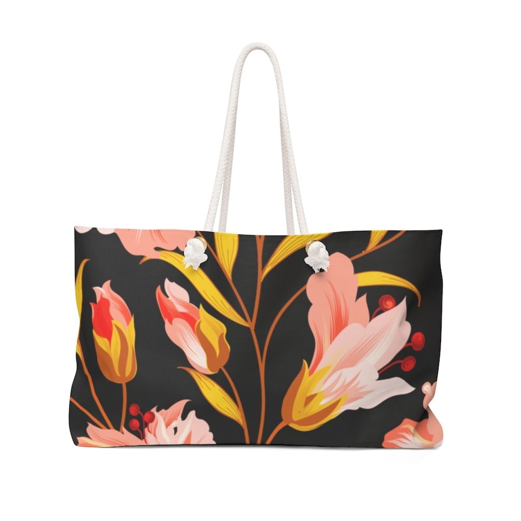 Our oversized Weekender Tote is perfect for your weekend at the beach or in town. The wide-mouthed, durable bag holds a generous amount of personal items and is easily held by its thick rope handles. Our large capacity Weekender Tote Bag is perfect for your weekend at the beach or in town. The wide-mouthed, durable bag holds a generous amount of personal items and is easily held by its thick rope handles. Perfect for work, school, casual wear, indoor/outdoor activities, social gatherings, or any occasion.