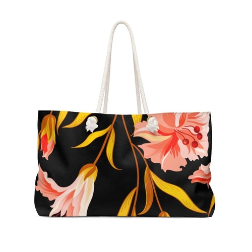 Weekender Tote Bag - Floral Gold Multicolor Illustration