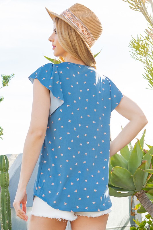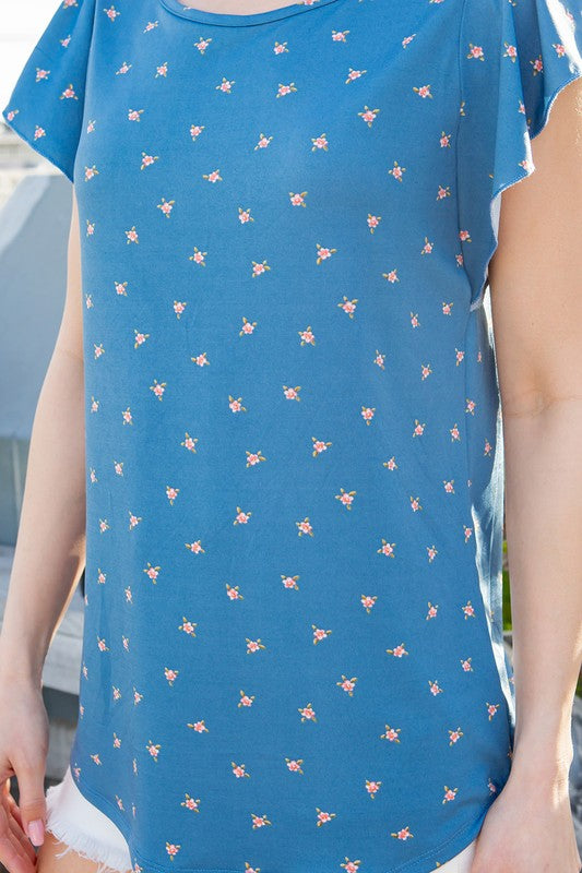 Dity Floral Flutter Sleeve Jersey Top with Armhole Inset