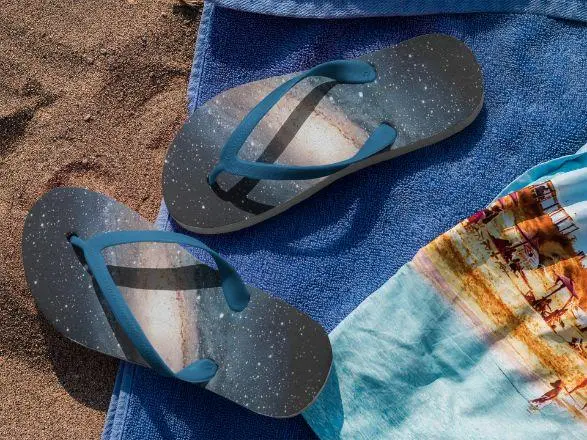 Step out in style in these unique customized flip flops, with printed fabric top side and black soles and straps. S = EU 37-39, M = EU 40-43, L = EU 44-47.