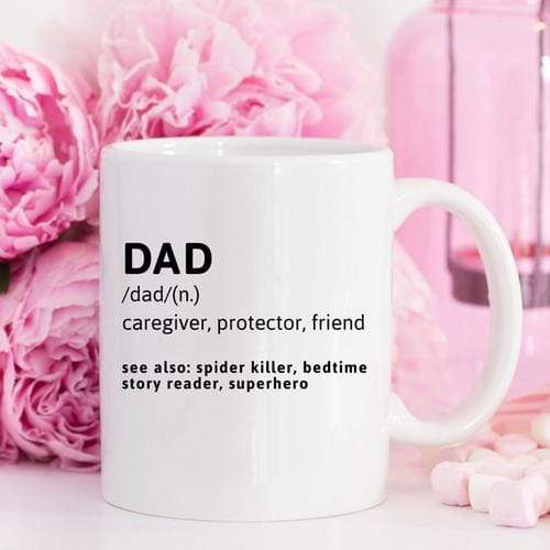 WITH THIS FUNNY COFFEE MUG, YOU CAN MAKE ANYONE LIGHT UP WITH DELIGHT! If you’re looking for a gift that women and men of your life will actually use and enjoy for years to come, then check out the "DAD (n.) caregiver, protector, friend, see also: spider killer, bedtime story reader, superhero - Funny Coffee Mug"! Customized mugs speak to their recipients on a more personal level, making them feel special. Plus, mugs are universally functional gifts, even if you’re not a coffee or tea drinker. • THE ONLY AUTHORIZED SELLER OF THIS "DAD (n.) caregiver, protector, friend, see also: spider killer, bedtime story reader, superhero - Funny Coffee Mug" IS . • DELIVERS THE HIGHEST QUALITY FUNNY COFFEE MUG. Our 11 oz. mugs are made from the highest grade ceramic, and the designs are printed and sublimated in the United States. • MUGS ARE DISHWASHER AND MICROWAVE SAFE. • REST ASSURED WITH OUR MONEY-BACK GUARANTEE. All products come with a 100% Customer Satisfaction Guarantee. • IT’S BOUND TO BECOME A FAVORITE FUNNY COFFEE MUG. So what are you waiting for? Click the “Add-to-cart” button and get your "DAD (n.) caregiver, protector, friend, see also: spider killer, bedtime story reader, superhero - Funny Coffee Mug" while supplies last.