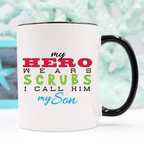 Our custom printed coffee mugs are the perfect size to hold just the right amount of your favorite hot beverage. These high quality, dishwasher and microwave safe mugs are made to last for years to come. They make the perfect gift for the special Nurse hero in your life, or to keep for yourself! Don’t wait, purchase one today! Size: 11 oz - FUNNY GIFTS - These mugs make great all-occasion gifts for your nurse hero, family, and friends! - VIVID, HIGHLY READABLE TEXT - "My Hero Wears Scrubs, I Call Him My Son" - HIGH QUALITY - Dishwasher and microwave safe - FOR ANY SPECIALIZATION - Perfect for the hero in your life--your nurse son!