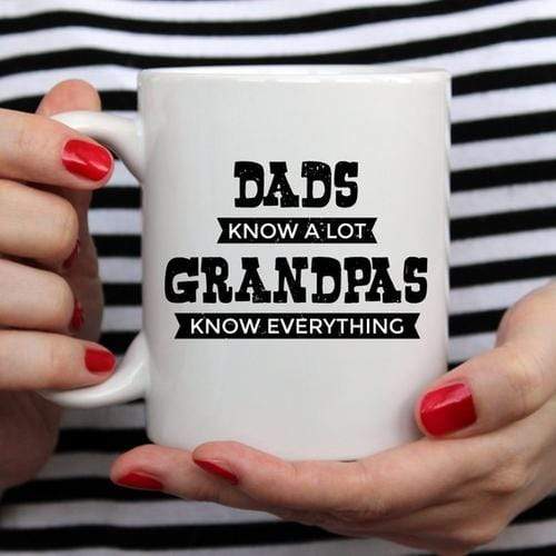 "Dads Know A Lot, Grandpas Know Everything - Funny Coffee Mug" IS SURE TO MAKE ANYONE SMILE FROM EAR TO EAR! The best gifts are both personal and functional, and that’s why this "Dads Know A Lot, Grandpas Know Everything - Funny Coffee Mug" is a fantastic choice. You can also dress the mug up even more by placing additional gifts inside, such as stickers, magnets, candies and chocolates, or coffee grounds and tea bags. • IS THE ONLY AUTHORIZED SELLER OF THIS UNIQUE MUG. • IF YOU WANT THE HIGHEST QUALITY FUNNY COFFEE MUG, YOU’VE COME TO THE RIGHT PLACE. Our mugs come in 11 oz sizes. They’re crafted from the highest grade ceramic, and our designs are printed and sublimated in the United States. • PLUS, OUR MUGS ARE MICROWAVE AND DISHWASHER SAFE. • "Dads Know A Lot, Grandpas Know Everything - Funny Coffee Mug" . You never have to worry when you do business with ; we stand by our mugs 100%. • IT’S BOUND TO BECOME A FAVORITE FUNNY COFFEE MUG. We continually update our inventory with fresh designs and can only keep so many mugs in stock. So don’t wait to order yours!