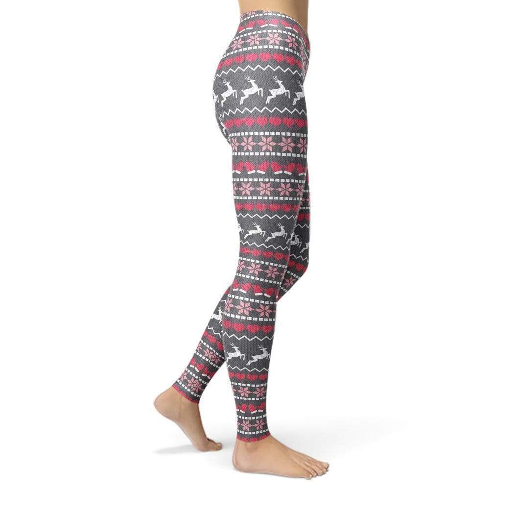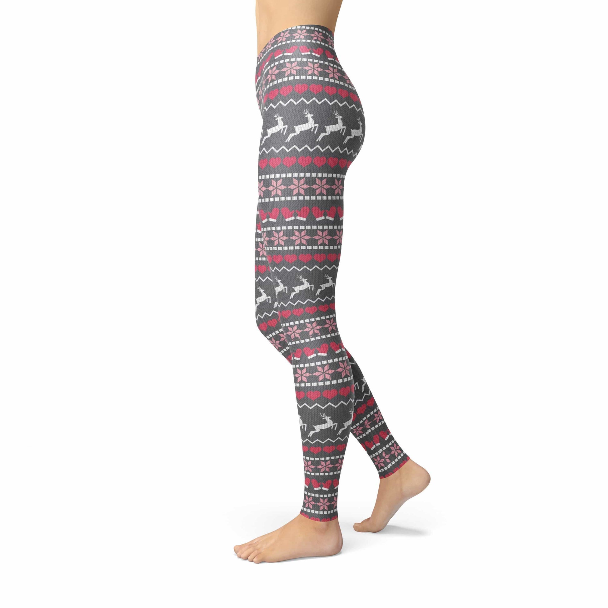 The Handmade Women's Printed Grey Holiday Sweater Leggings feature an all-over design on soft lycra fabric for lasting comfort.
