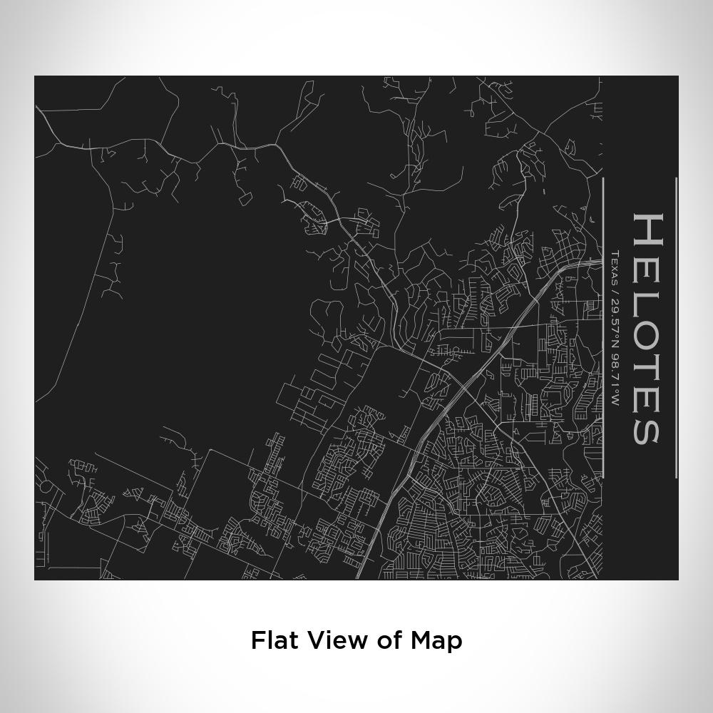 Custom engraved map of Helotes, Texas and coordinates on 20oz double walled insulated stainless steel bottle with bamboo top in matte black. Measurement - 4in x 4in x 12in.