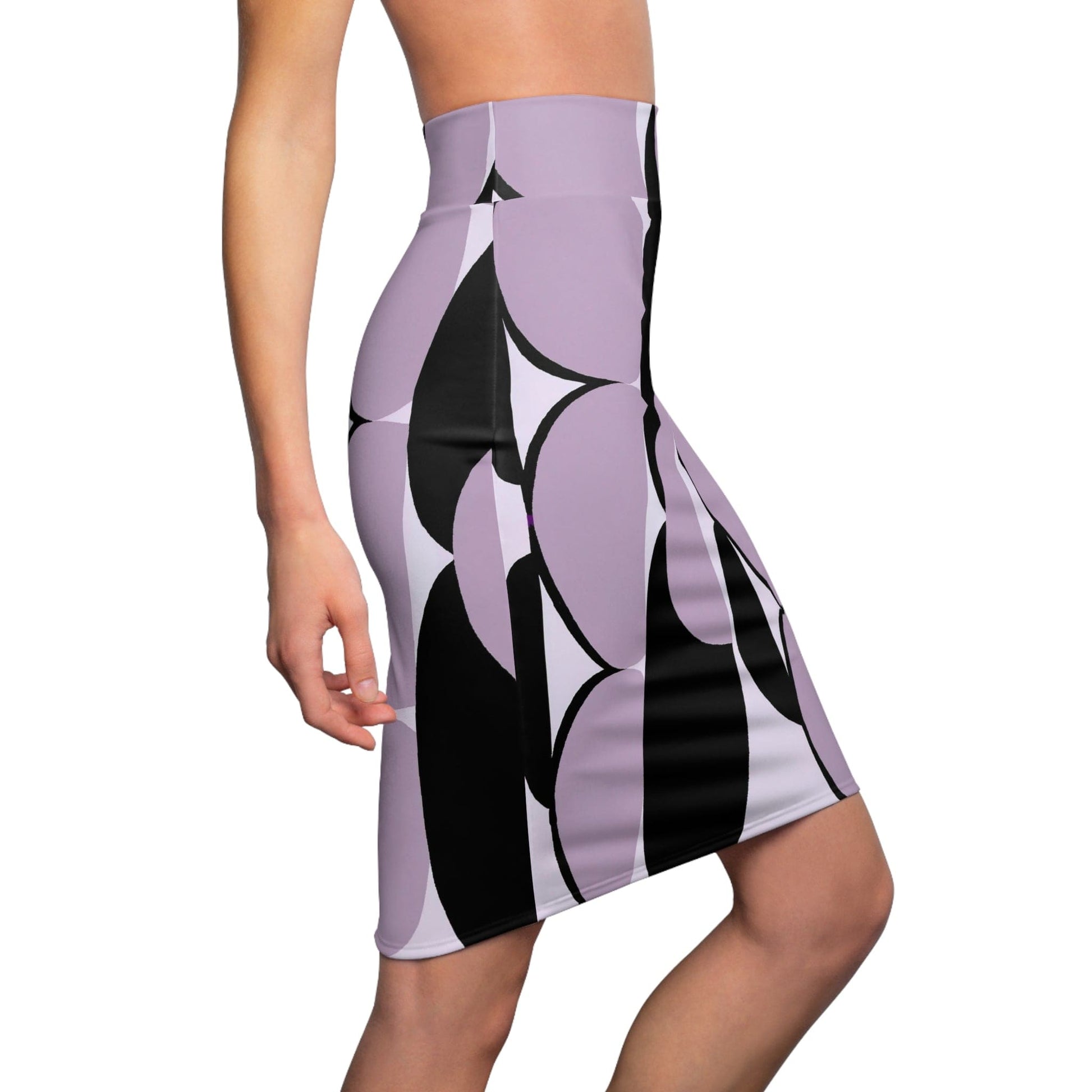 High Waist Womens Pencil Skirt - Contour Stretch - Geometric Lavender