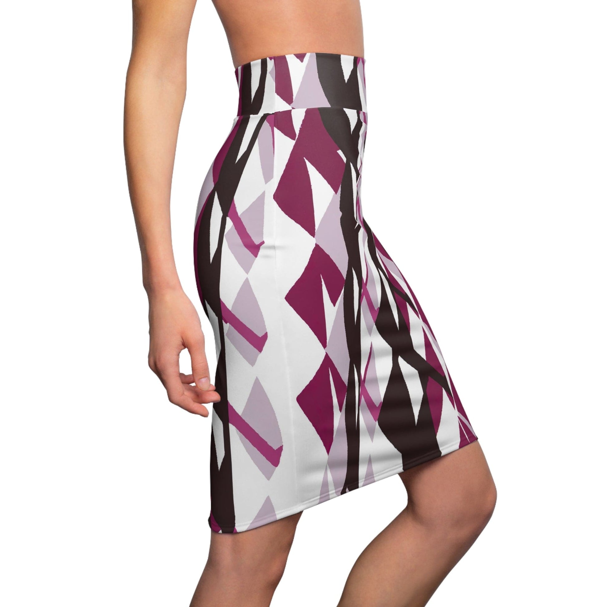High Waist Womens Pencil Skirt - Contour Stretch - Mauve Pink and