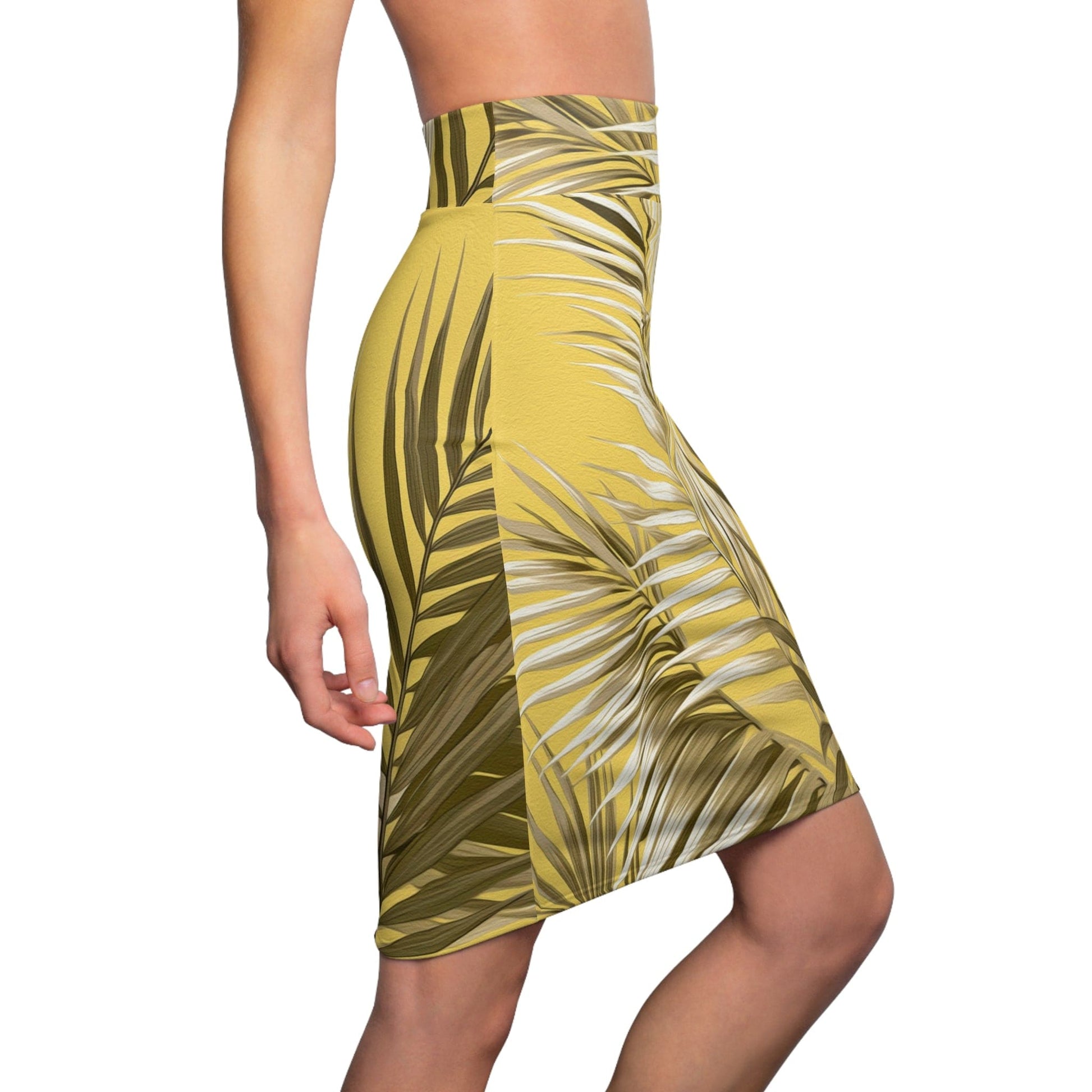 High Waist Womens Pencil Skirt - Contour Stretch - Palm Tree Brown and