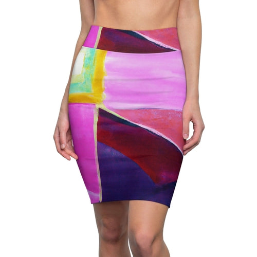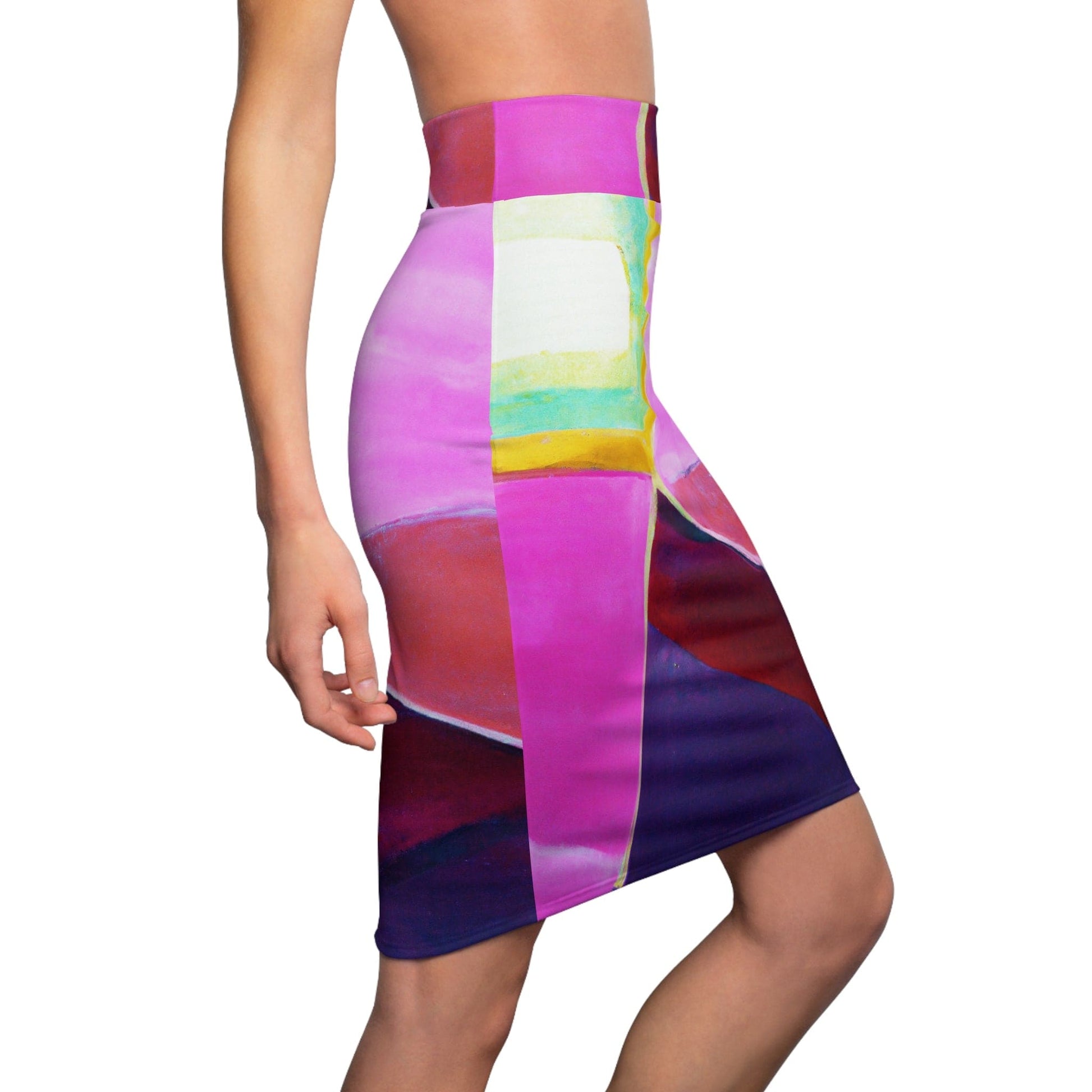 High Waist Womens Pencil Skirt - Contour Stretch - Pink Purple Red