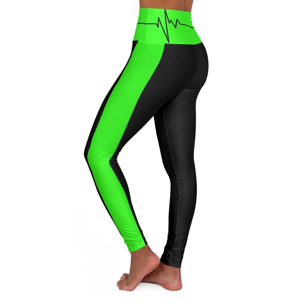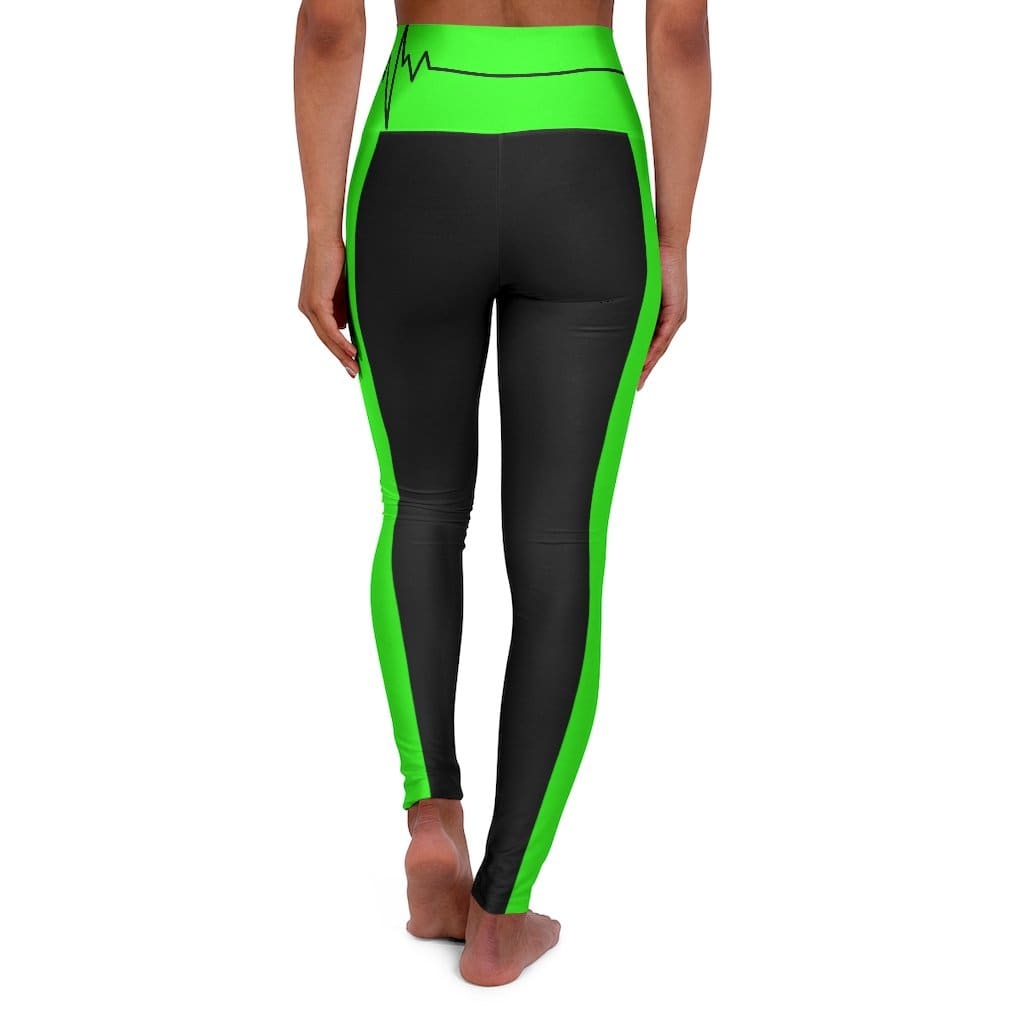 High Waisted Yoga Leggings - Black and Neon Green Beating Heart Sports
