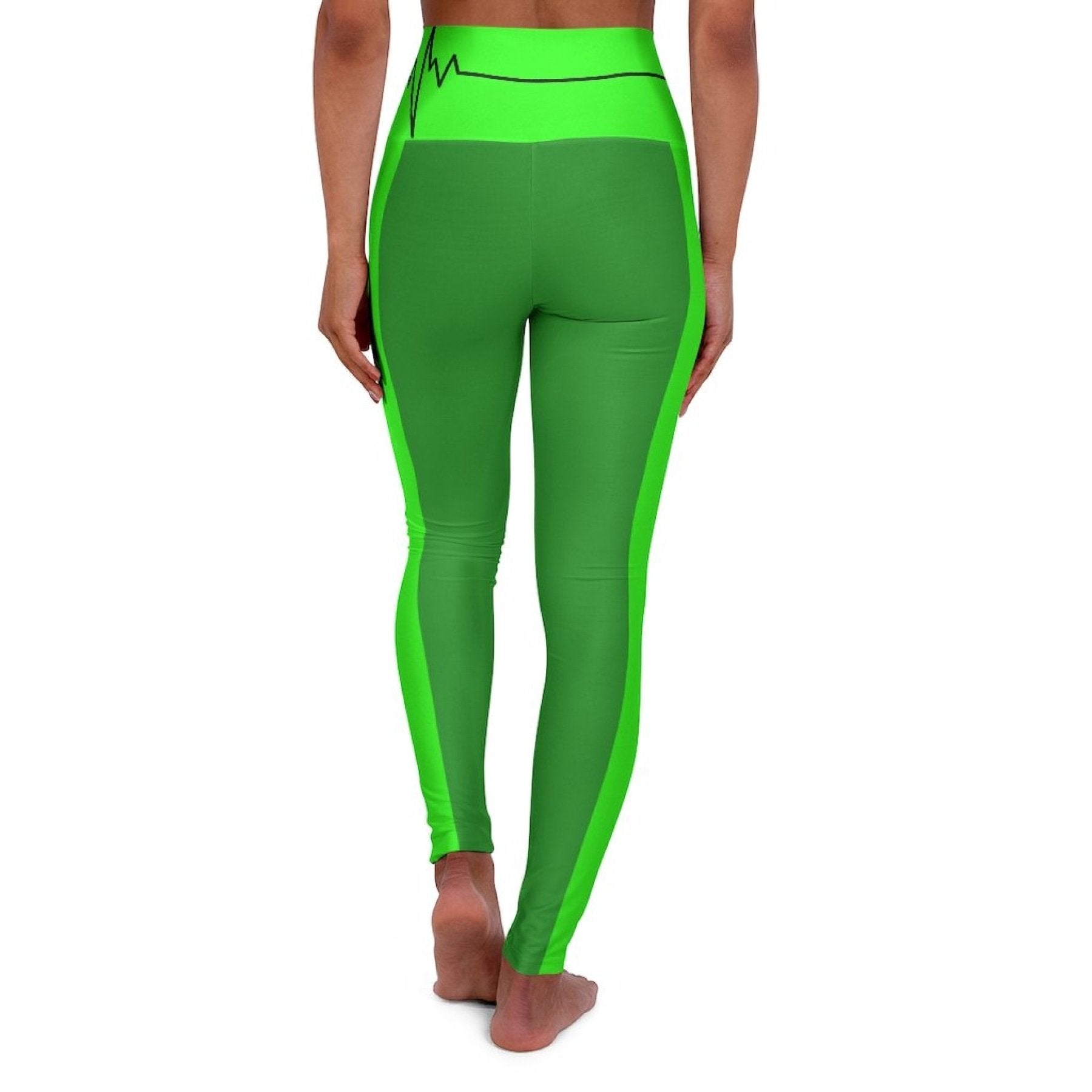 High Waisted Yoga Leggings - Forest Green and Neon Green Black