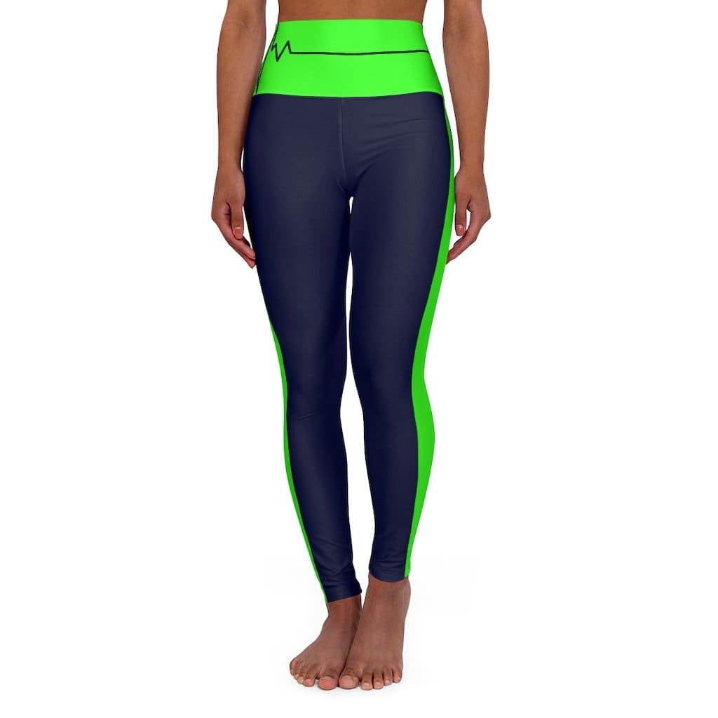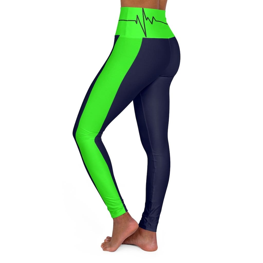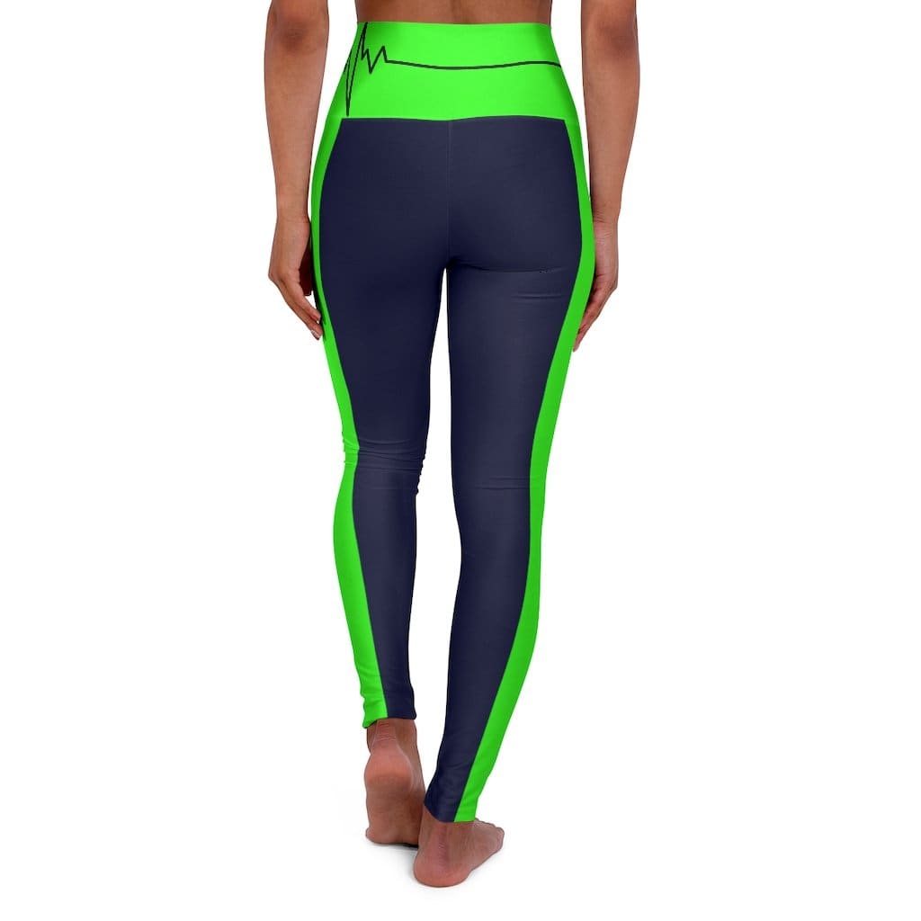 High Waisted Yoga Leggings - Navy Blue and Neon Green Beating Heart