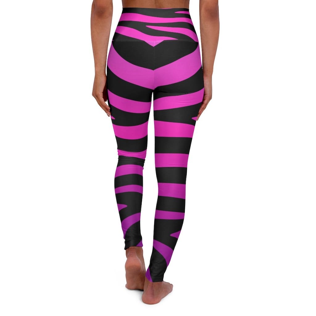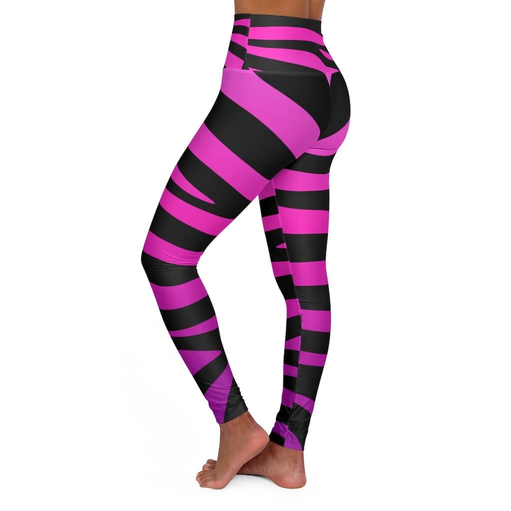 High Waisted Yoga Leggings - Purple and Black Stripes