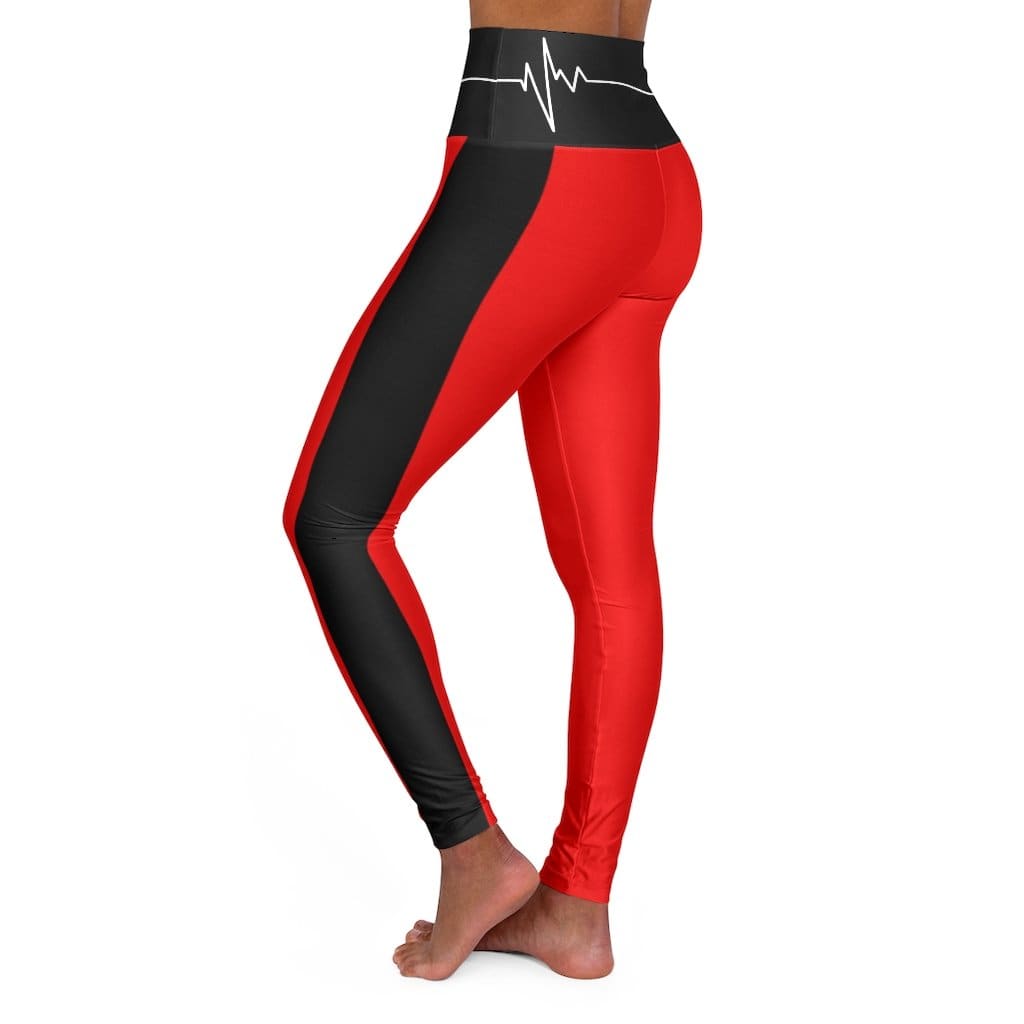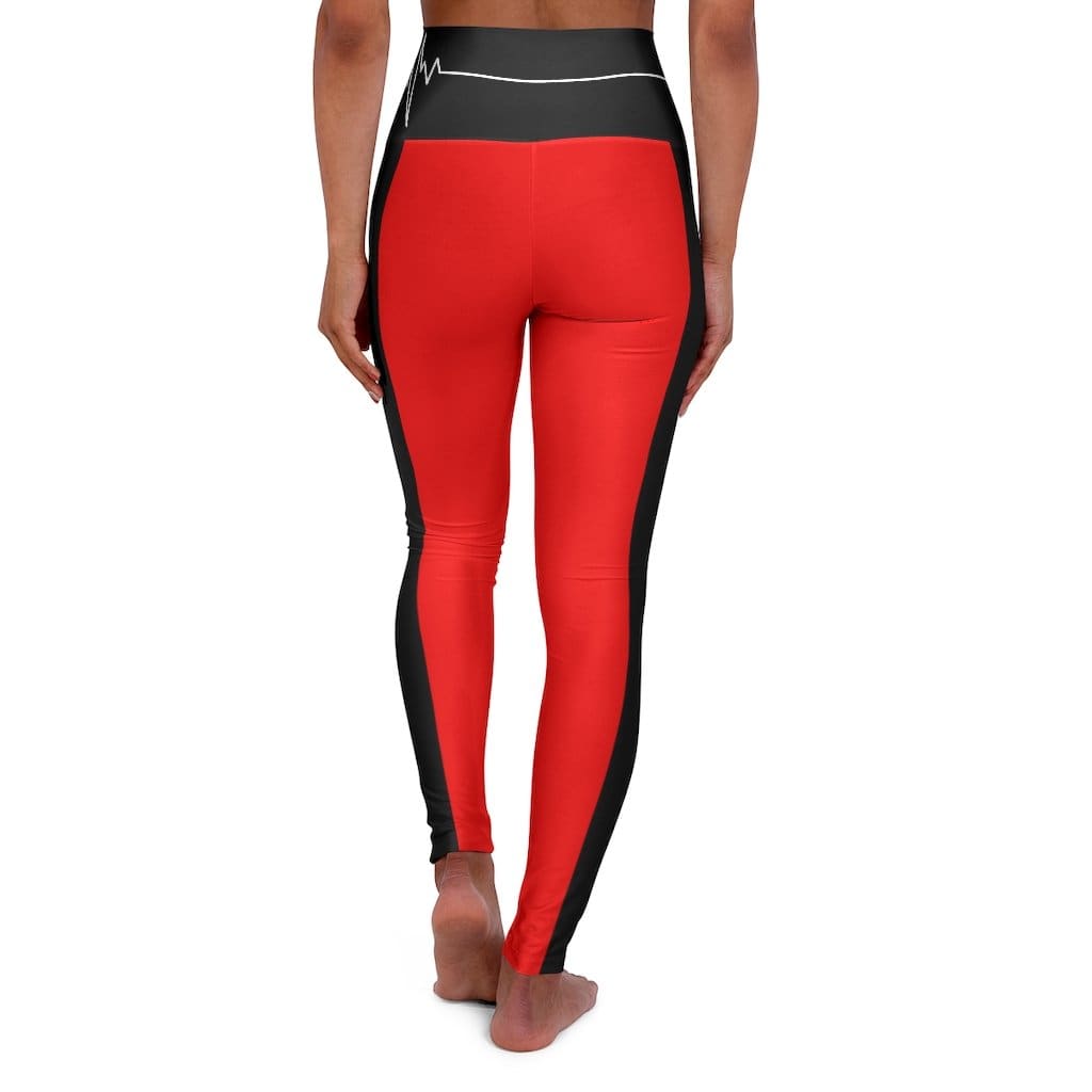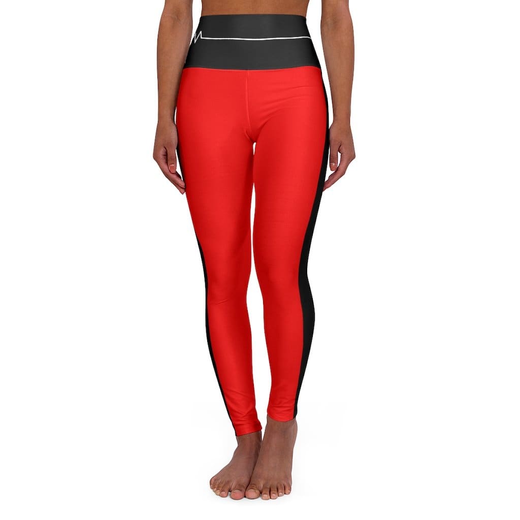 High Waisted Yoga Leggings - Red and Black White Bordered Beating