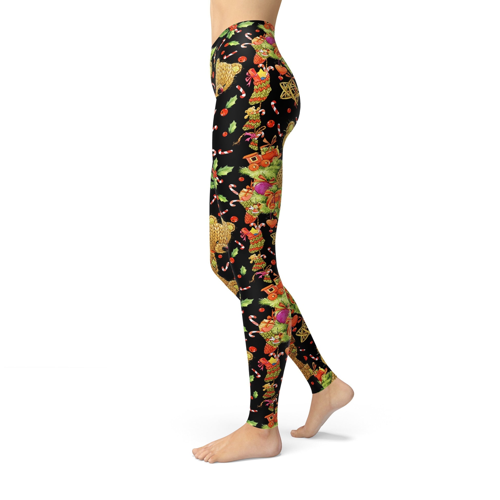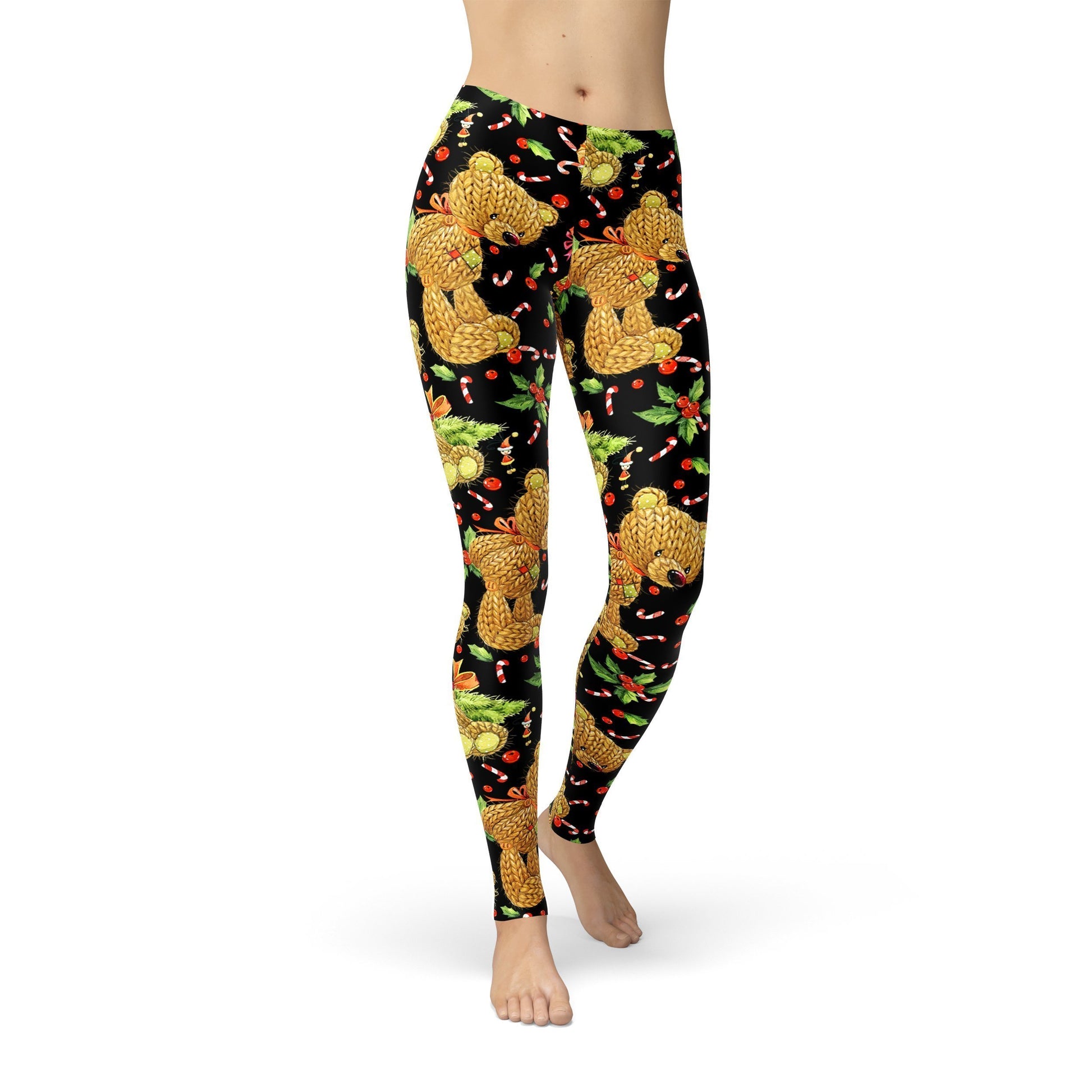 The Handmade Women's Printed Holiday Teddy Leggings feature an all-over design on soft lycra fabric for lasting comfort.