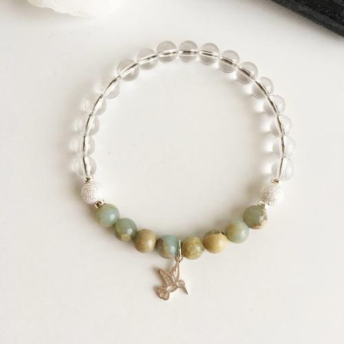 Joy & Tranquility - Crystal Quartz and Aqua Terra Jasper Bracelet - 6mm Stones