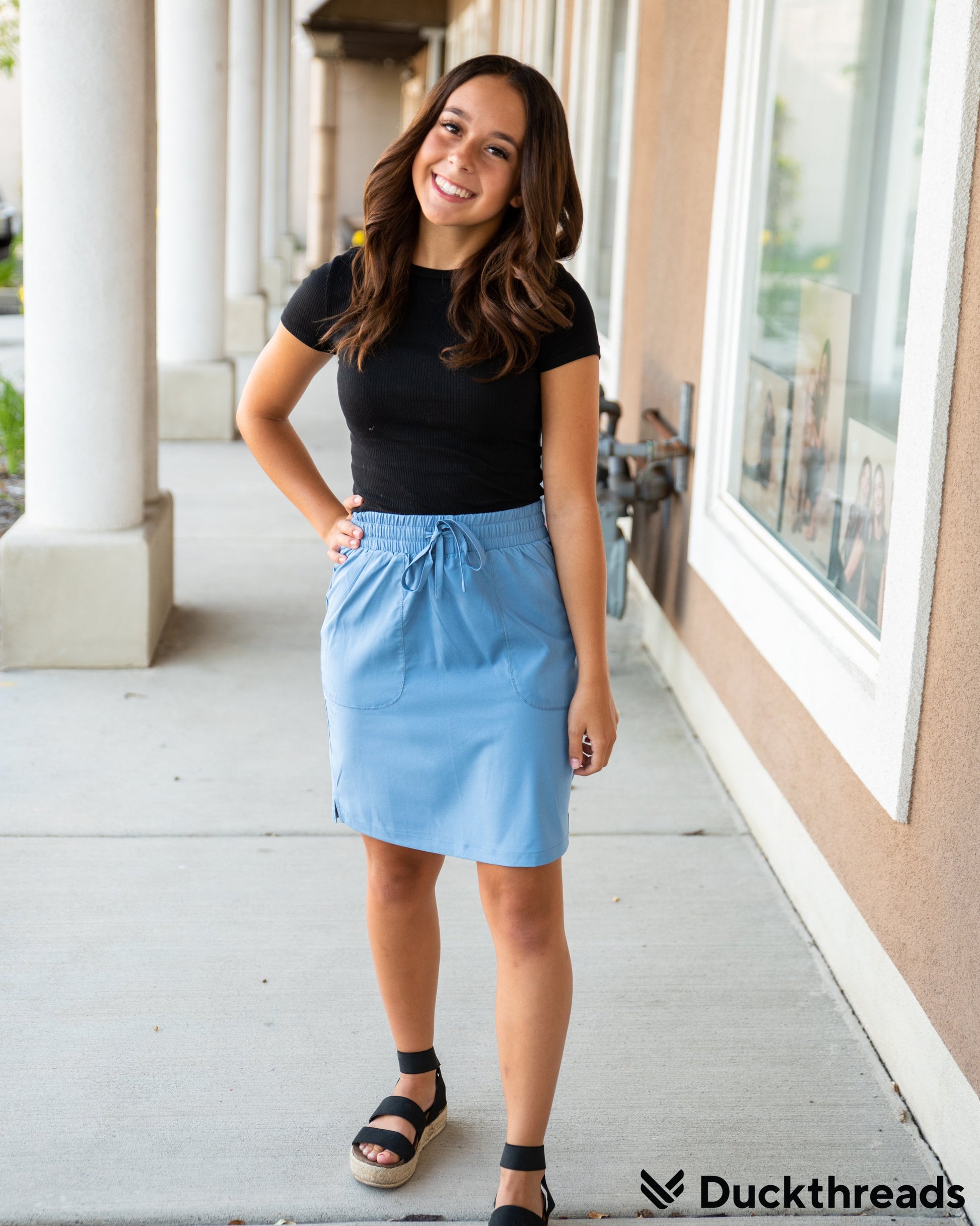 This fashionably casual skirt is going to be your new fave. Throw it on with a black or white tee, or your favorite graphic tee, and you'll have a winning outfit for any occasion. Size up for additional length, or down for a flattering mid-thigh length. This soft and stretchy fabric won't shrink!