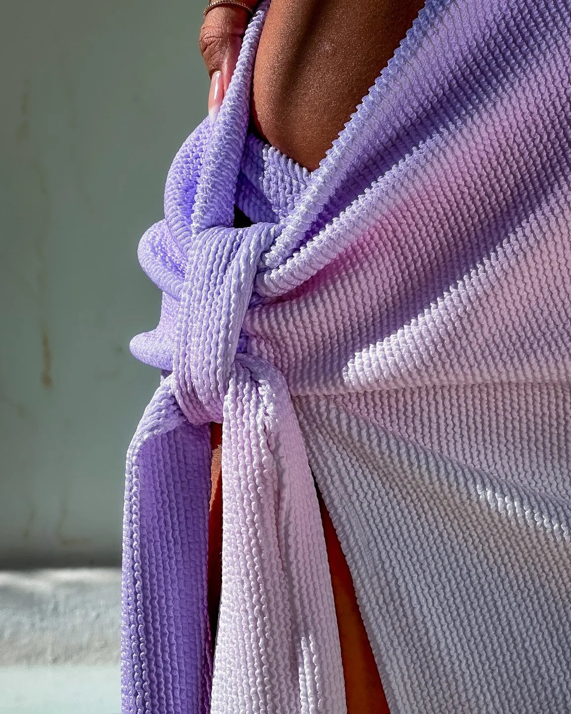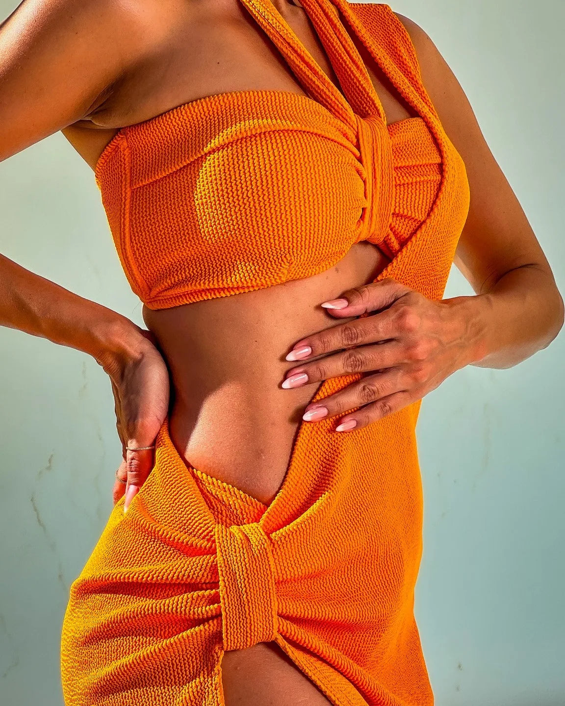 Experience ultimate style and comfort with the Sexikinis three piece short dress and two piece swimsuit - the perfect balance between fashion and functionality. Made with high-quality polyester and featuring a unique block color pattern, this set is designed for women of middle age who want to feel confident and supported without sacrificing style. The wire-free design and mid-waist style ensure a comfortable and flattering fit, and the knit craft of weaving adds an extra touch of elegance. With a release date set for Spring 2024, this set is a must-have for any beach or pool day. Don't miss out - order your set today!