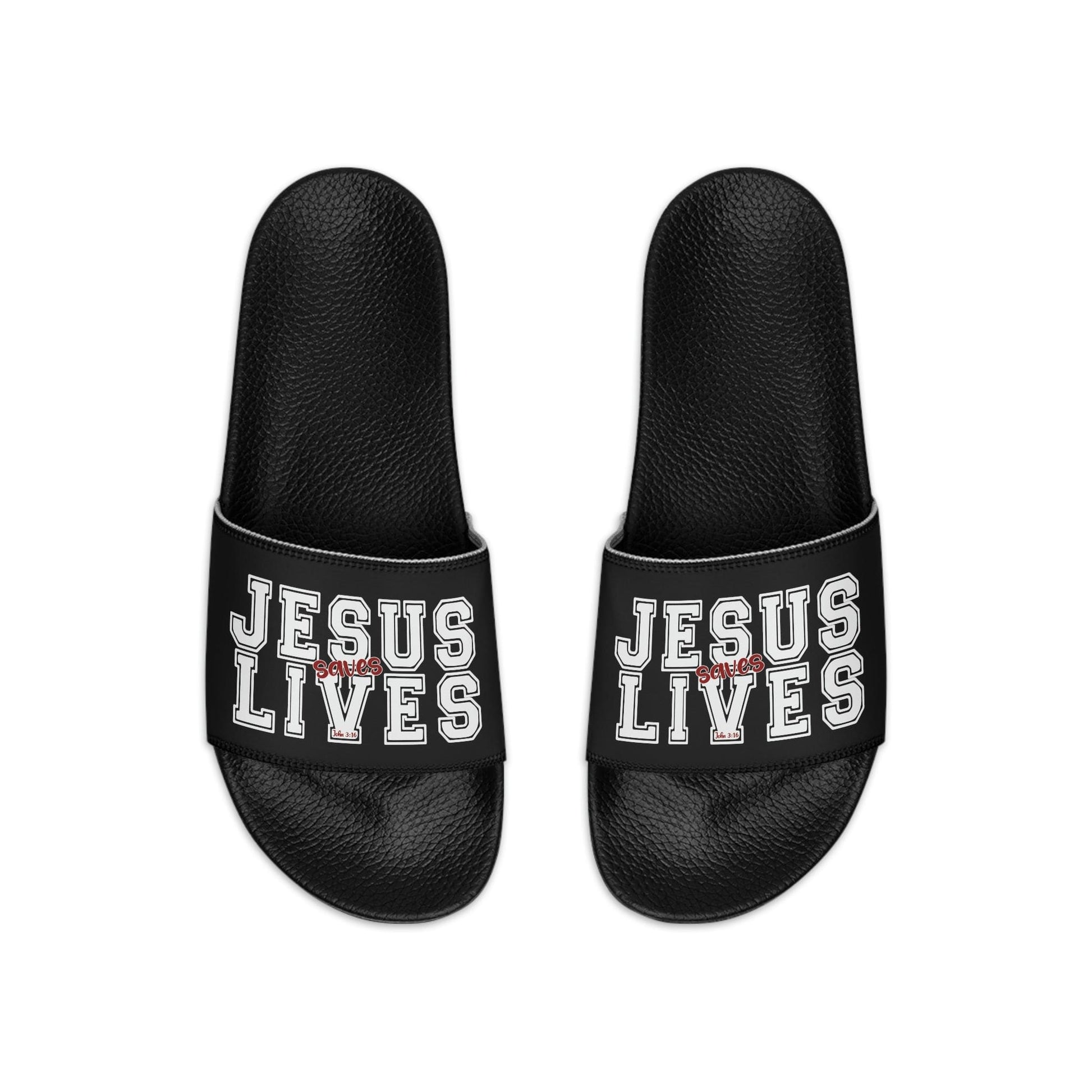 Mens Black Slide Sandals - Jesus Saves Lives - Christian Inpsiration