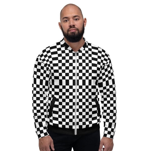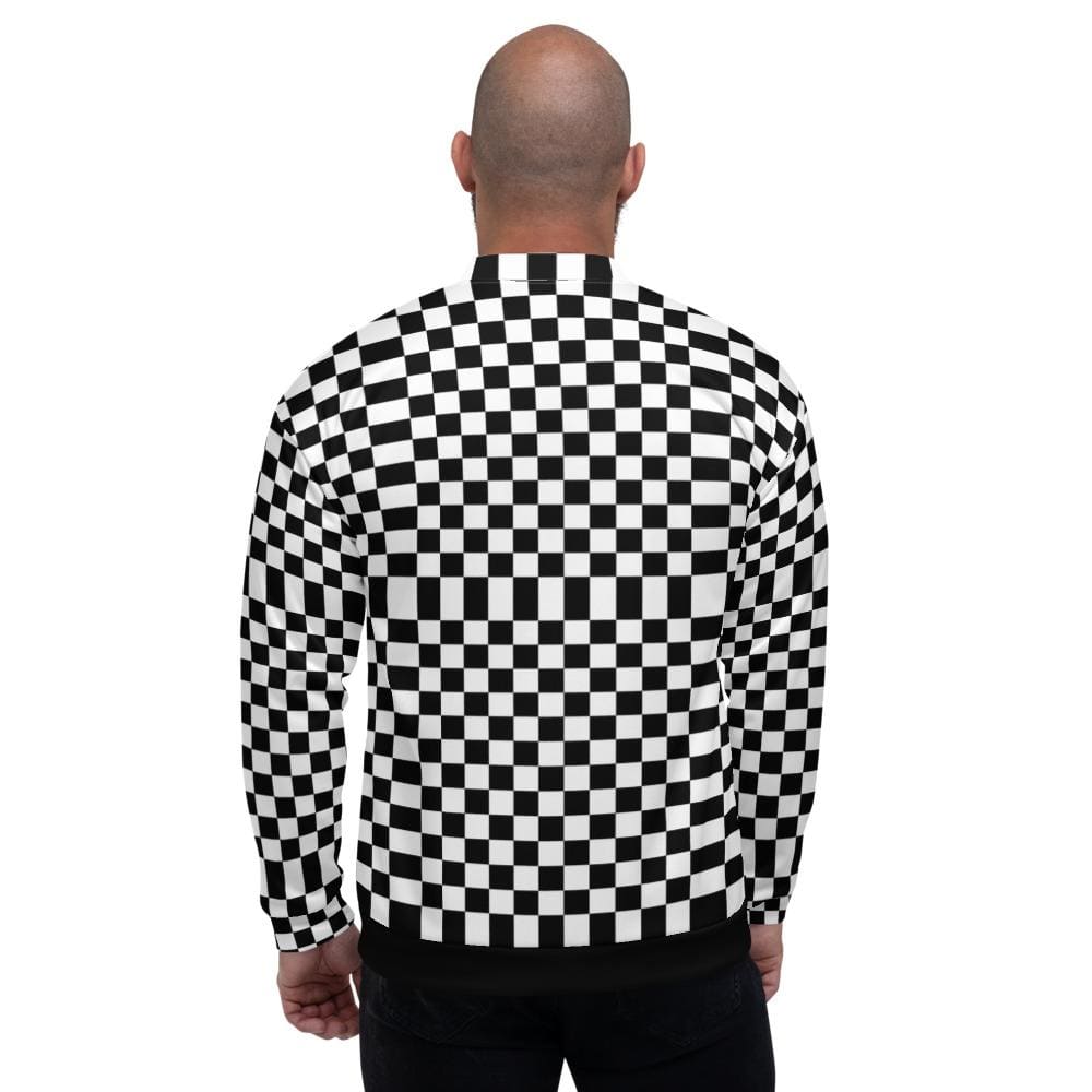 Mens Jacket - Checkered Colorblock Bomber Jacket Black/white