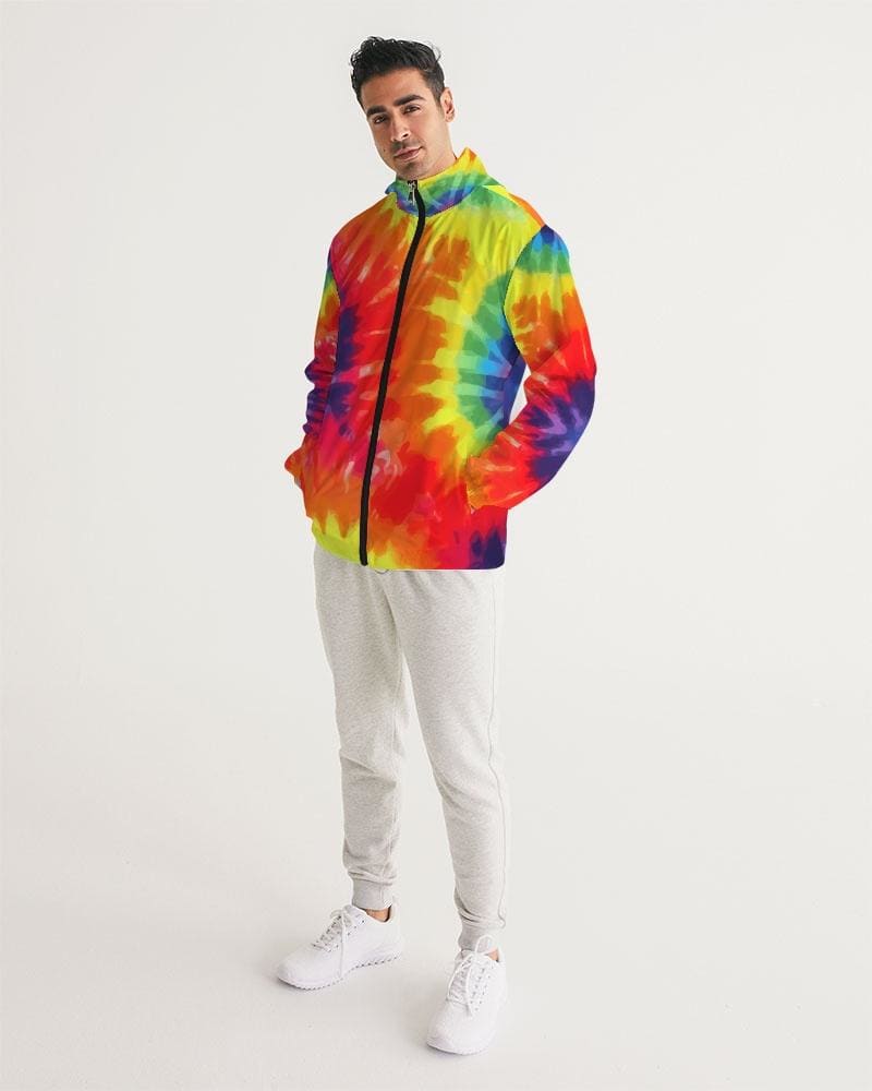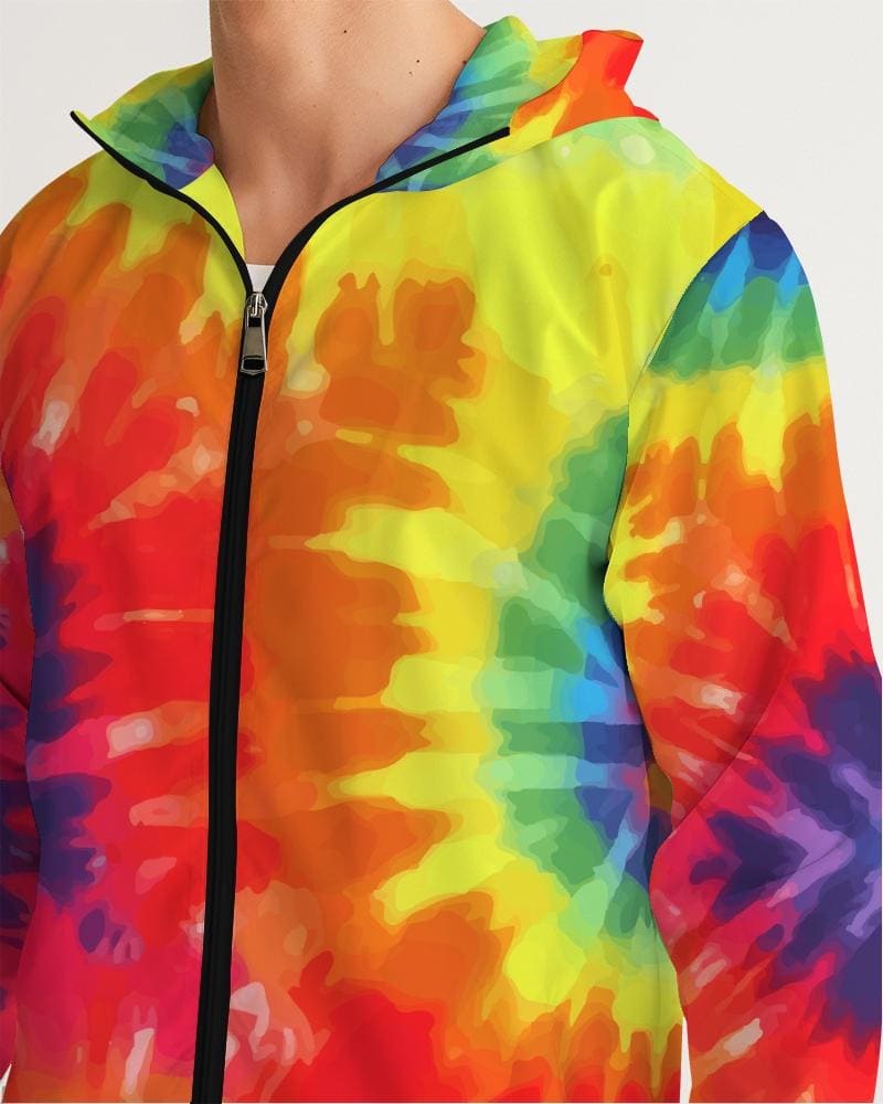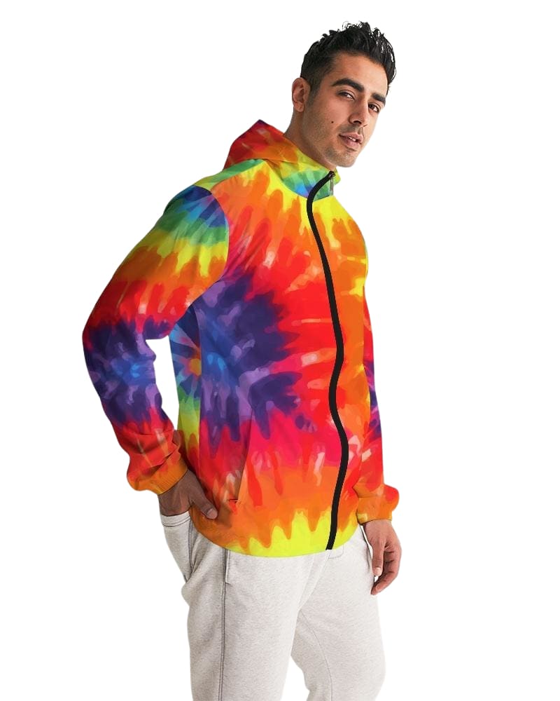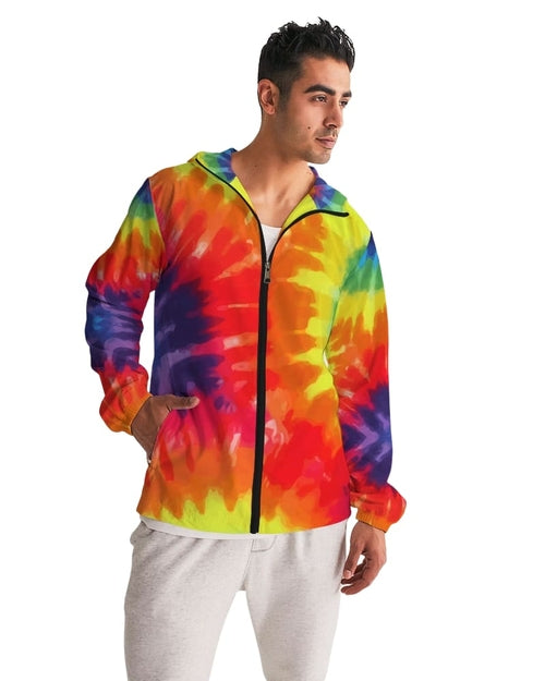 Mens Hooded Windbreaker - Rainbow Tie-dye Water Resistant Jacket -