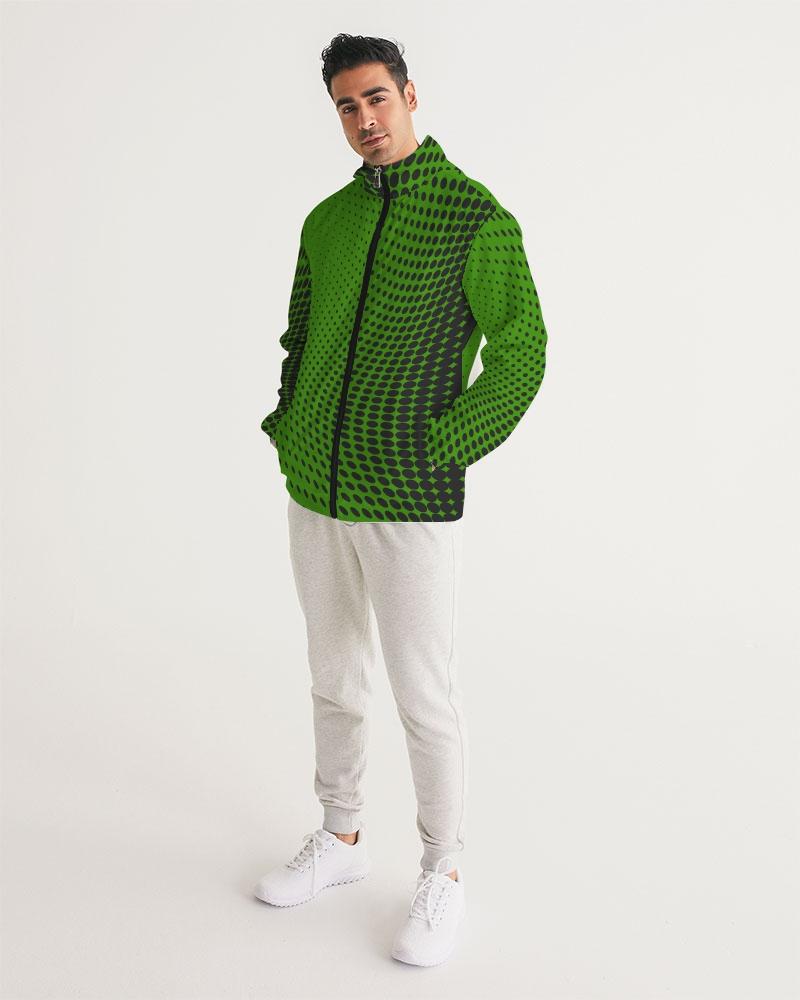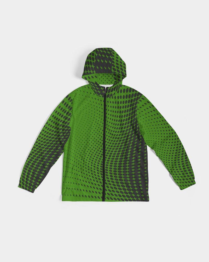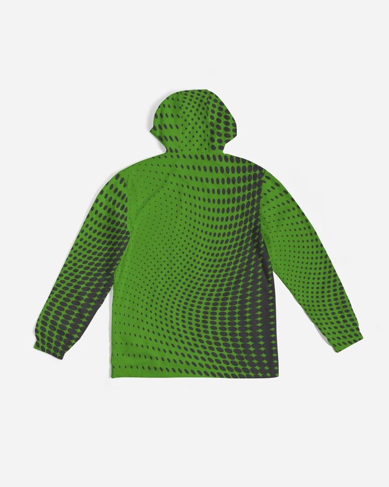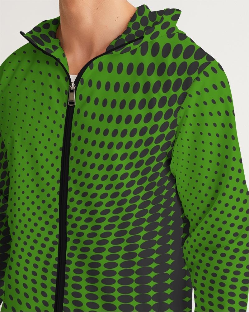 Mens Hooded Windbreaker - Green Polka Dot Water Resistant Jacket