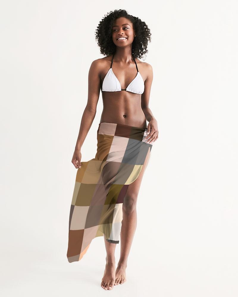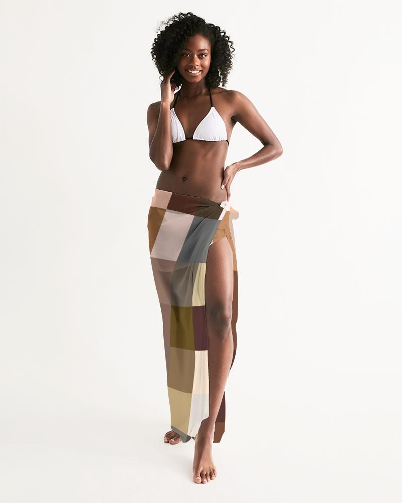 Sheer Sarong Swimsuit Cover Up Wrap / Brown Colorblock Multicolor
