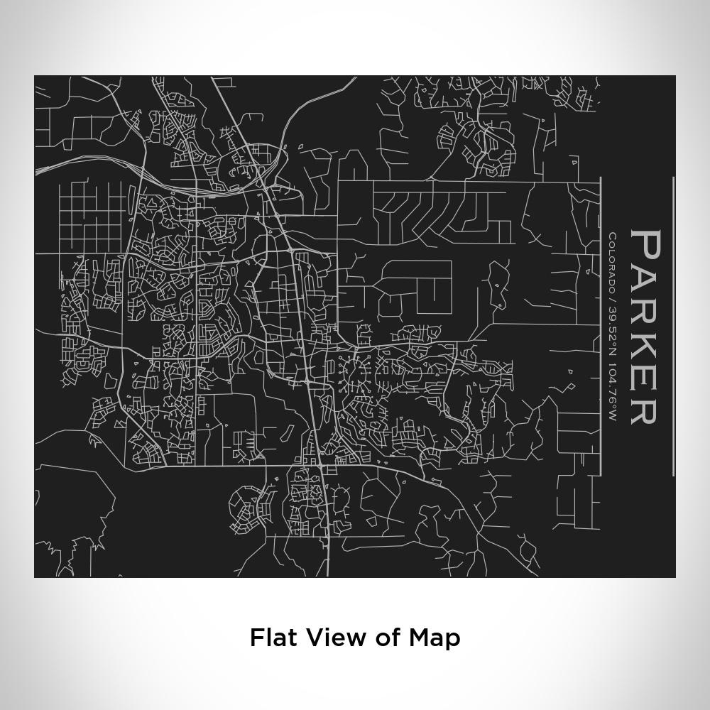 Custom engraved map of Parker, Colorado and coordinates on 20oz double walled insulated stainless steel bottle with bamboo top in matte black. Measurement - 4in x 4in x 12in.